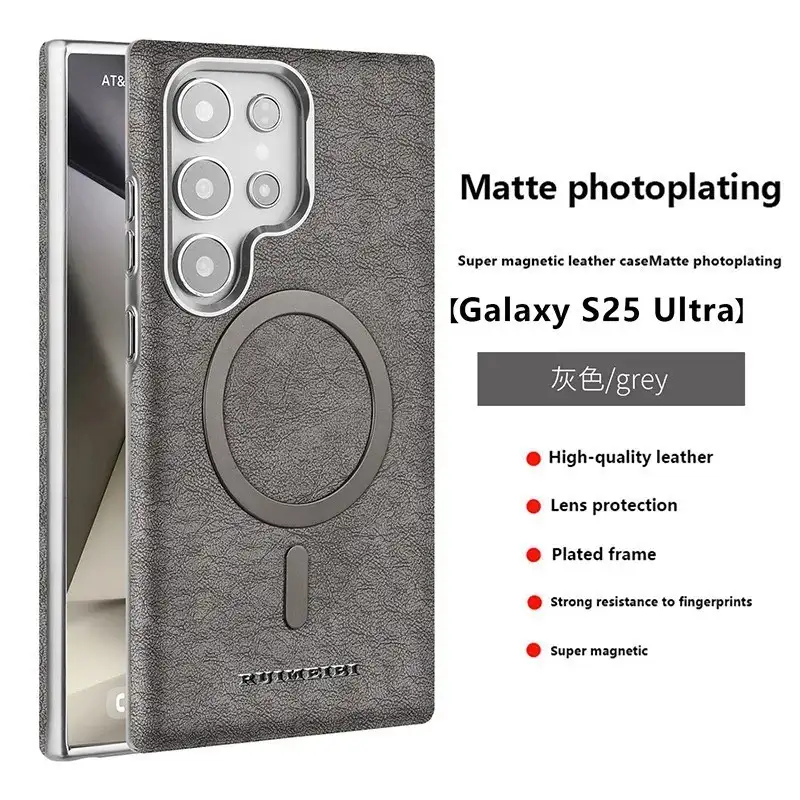 New Electroplating PU Leather Magnetic Case For Samsung S23 S24 S25 Ultra Wireless Charging Protective Cover