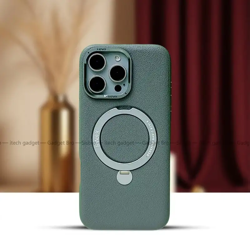 Luxury Leather Magnetic Wireless Charging Supported Metal Ring Stand Case For Iphone 16 To 16 Pro Max