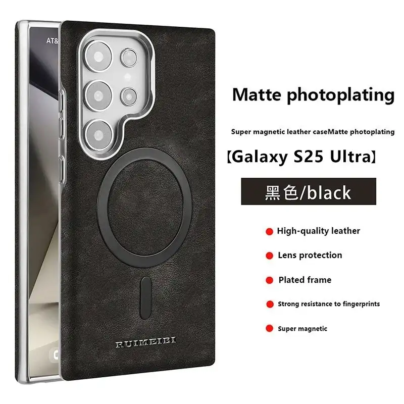New Electroplating PU Leather Magnetic Case For Samsung S23 S24 S25 Ultra Wireless Charging Protective Cover
