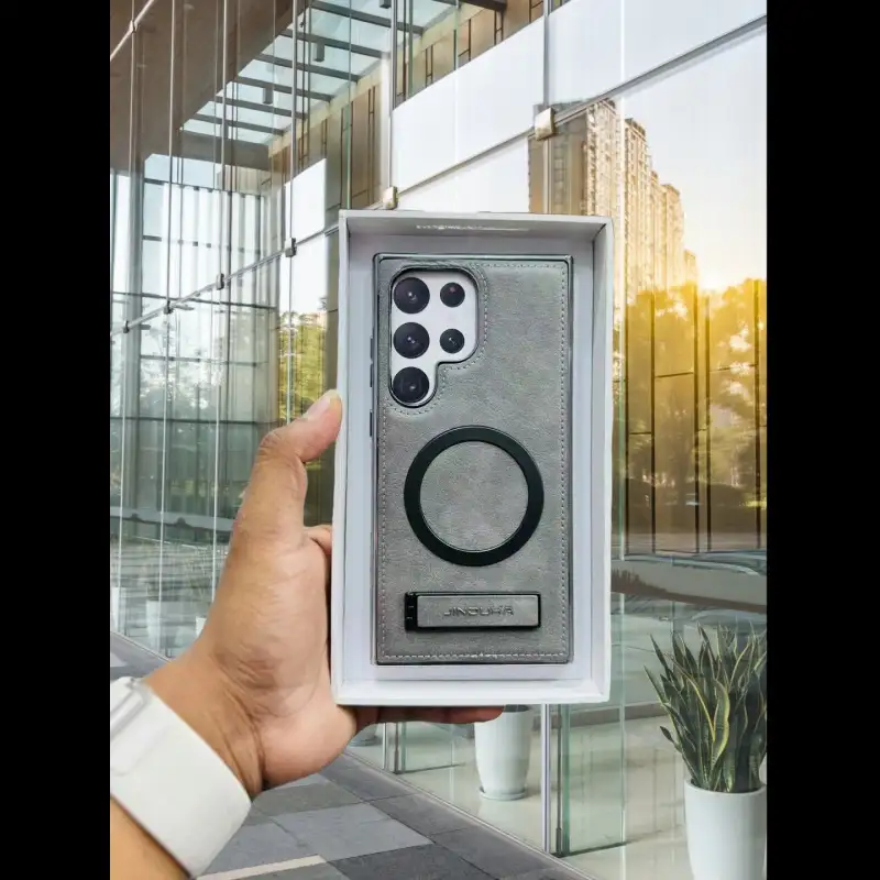 The Business Leather Magnetic Kickstand Case is the perfect blend of elegance, convenience, and durability—engineered to complement your Galaxy Ultra with professional flair.
